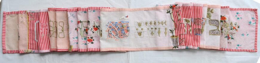 Join us for this special free Art Speaks to accompany Katya Oicherman’s exhibition, Stories of the Torn Swaddling Cloth, in our Studio Gallery featuring embroidery and video to tell a story of transforming a swaddling cloth into a Jewish ritual textile. In its close proximity to the human body, the cloth bears witness to our fundamental deliberations, while research linking the ritual and everyday textiles provides a framework for reflection and social commentary. In her presentation, Oicherman will discuss the stories behind her ongoing project to provide a context for this exhibition.