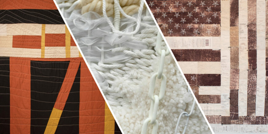 (Header photo: Details from Close Your Eyes, Lie in My Arms, Kehayr Brown-Ransaw; Support Network 01, 02, and 03, Nicole Thomas; The Most Famous Stars and Stripes, Dong Kyu Kim)