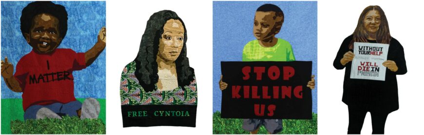 My art is one form of my activism. My quilts are designed to raise awareness, encourage dialogue, and spur viewers to action. Art is also a tool document history and current events. The eight issues highlighted in this exhibition challenge the viewer to envision what the United States could be if issues such as: police misconduct, the senseless killing of African American youth, human trafficking, wrongful convictions, life without possibility of parole, missing African American women and girls, gun violence, and domestic violence–were addressed without racial bias.