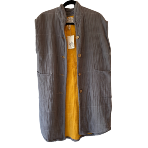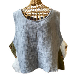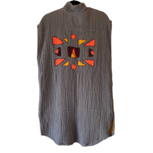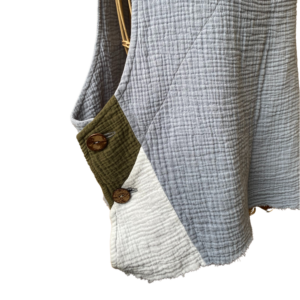 A modern skirt style made with traditional quilting techniques, this item is inspired by the image of well-loved vintage textiles hanging out to dry in the sun: bright, airy, and comforting. With details like frayed edges and patchwork-inspired piecing, each garment has a story to tell. Each piece is handmade in St. Paul and is made to last. Over time, the cotton fabric will grow softer and conform to the wearer’s body.