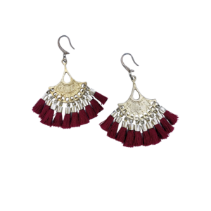 Hand crafted Fiber Tassel Earrings 2 1/2″ long x 1.5″ wide