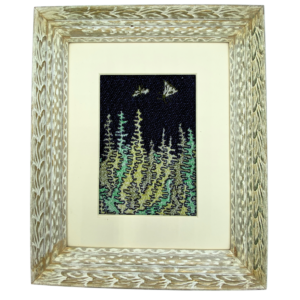 These funny and heartfelt pieces exist at the intersection of self-care, sarcastic memes, and queer joy. Embroidered on linen with handstitched felt backings, you can suspend the embroidery hoop frame at home or at work as a reminder to be present and to enjoy a laugh.