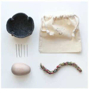 This is an easy, beginner’s kit for needle felting two-four hedgehogs out of a fluff of wool.